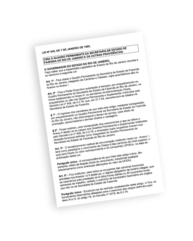 A Lei 830, de 1985, do Rio de Janeiro, foi fundamental para estabelecer e organizar o quadro de servidores da Fazenda Estadual. Antes dessa legislação, a administração pública na área fazendária no estado contava com uma estrutura menos organizada, com a presença de cargos sem regulamentação clara, nomeações muitas vezes feitas sem critérios padronizados e carência de um plano de carreira bem estruturado para os servidores.